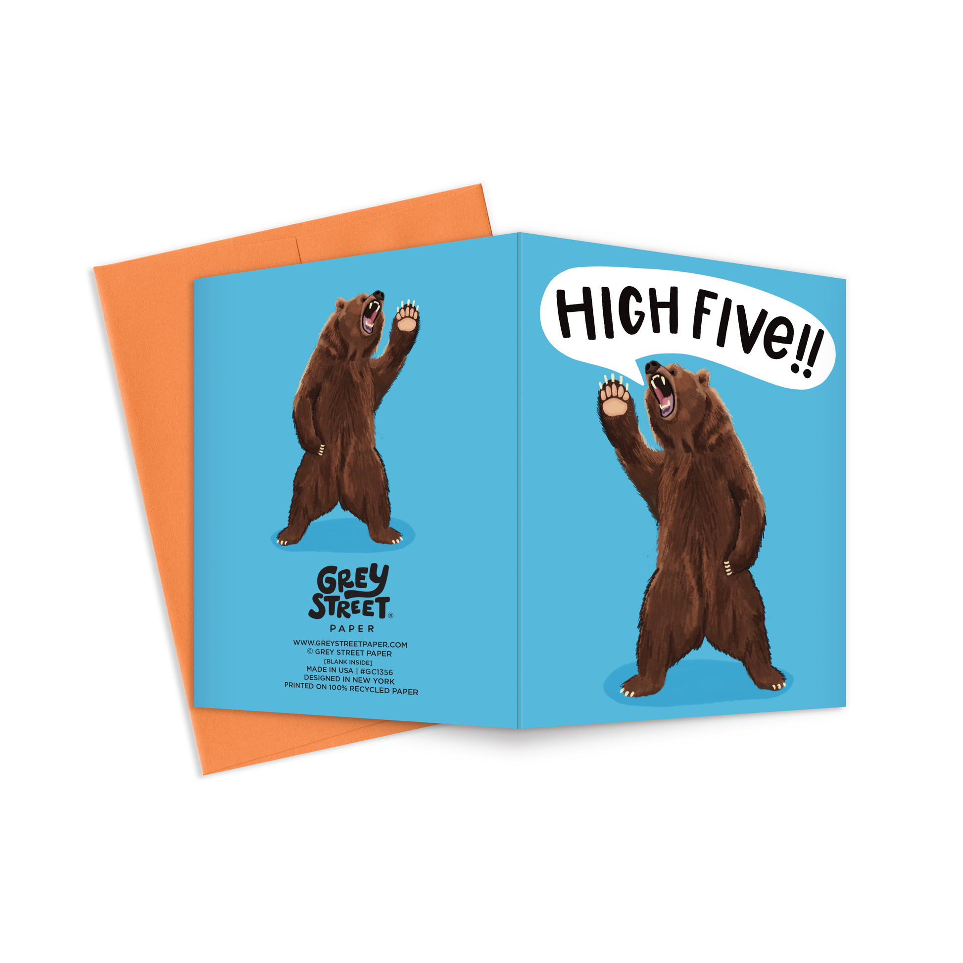 Congrats on a job well done!! 🎉 Celebrate the big accomplishment with this roaring good card, featuring a roaring grizzly bear high five 🐻🖐️ ! Whether it's for a congratulations, a graduation, or simply a job well done it's perfect for any achievement worthy of a high-five! 🐻