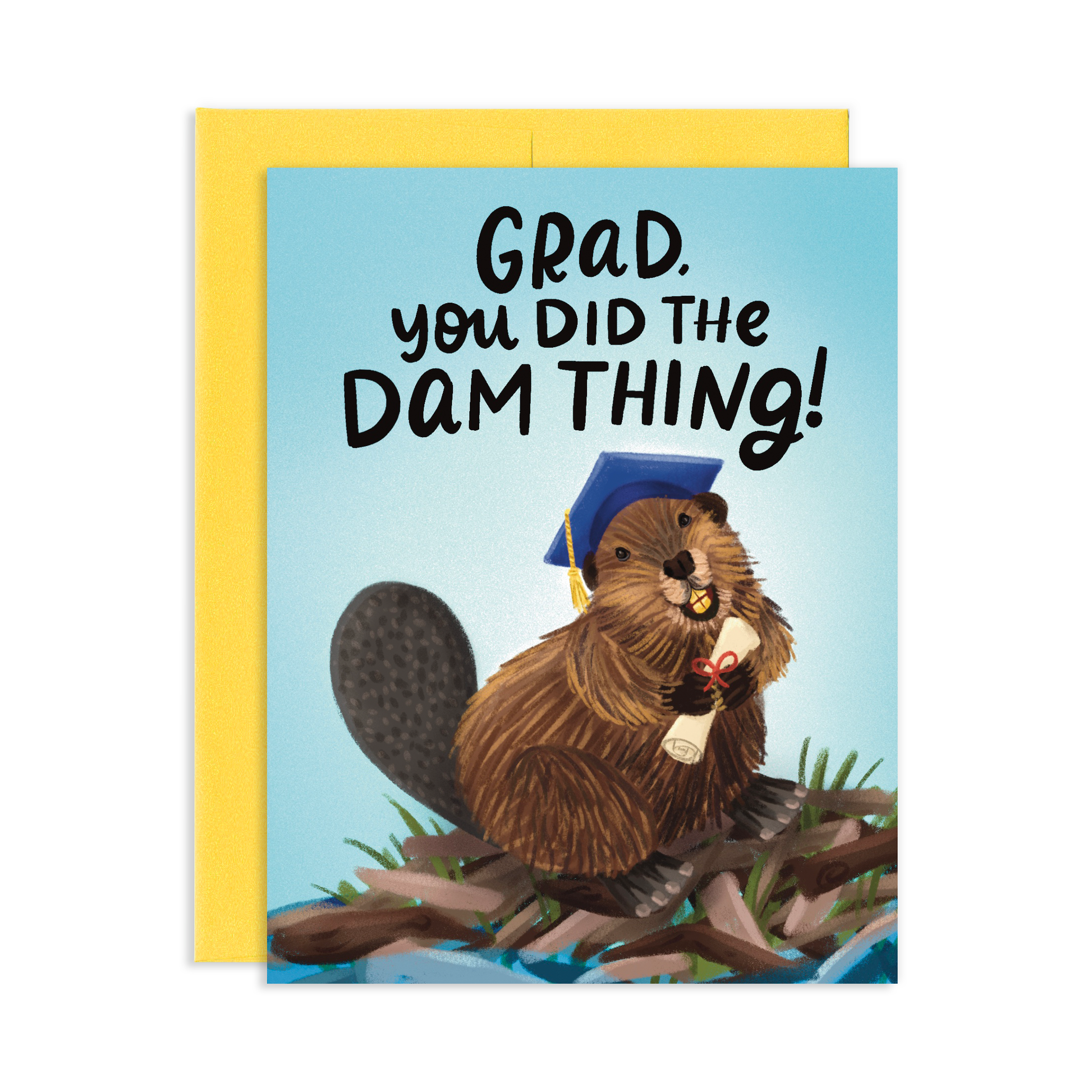 Celebrate your favorite grad with this punny beaver graduation card! Featuring a cute beaver, this card is perfect for the dam achievement of graduating. Give a dam and show your support for the accomplished grad. 🎓🎉