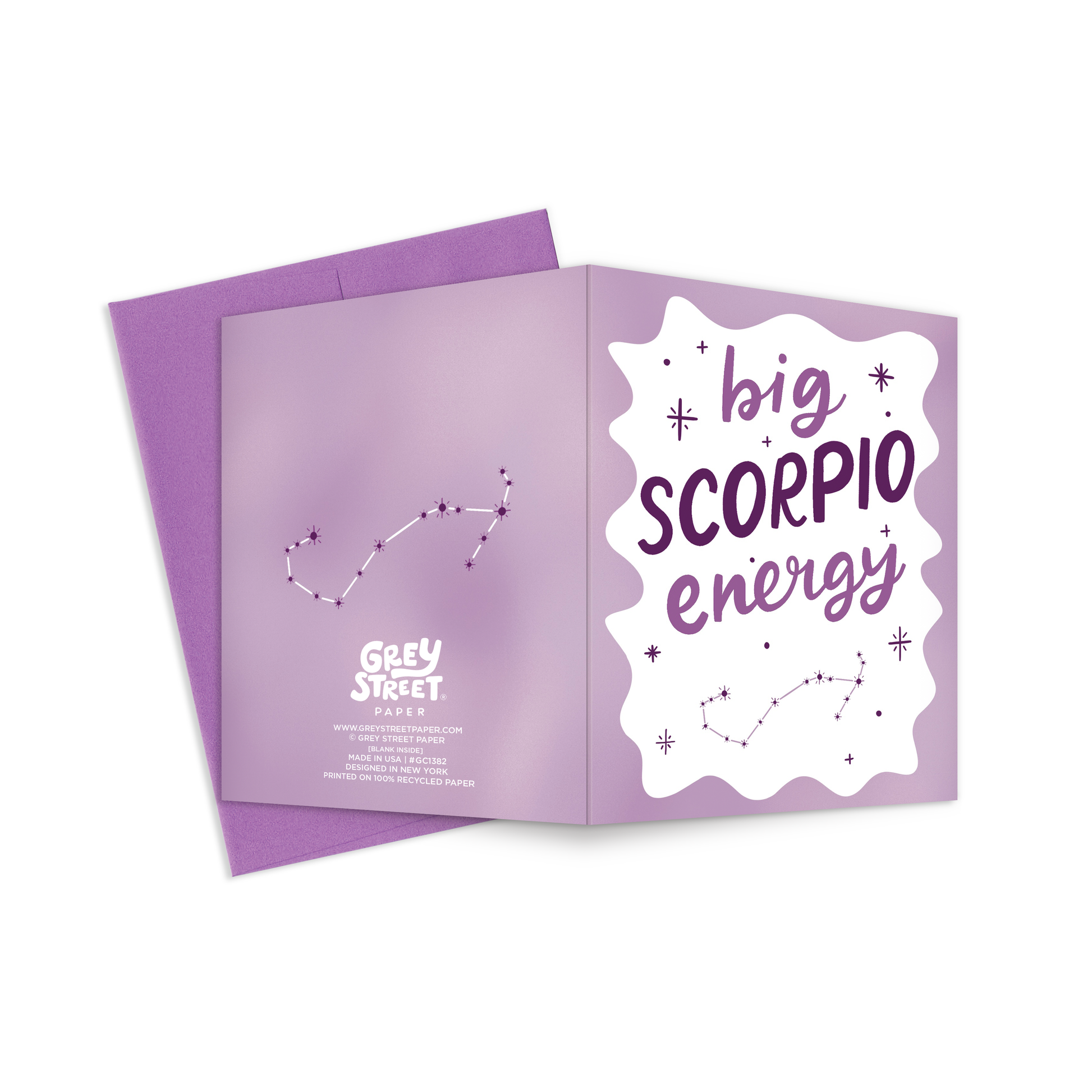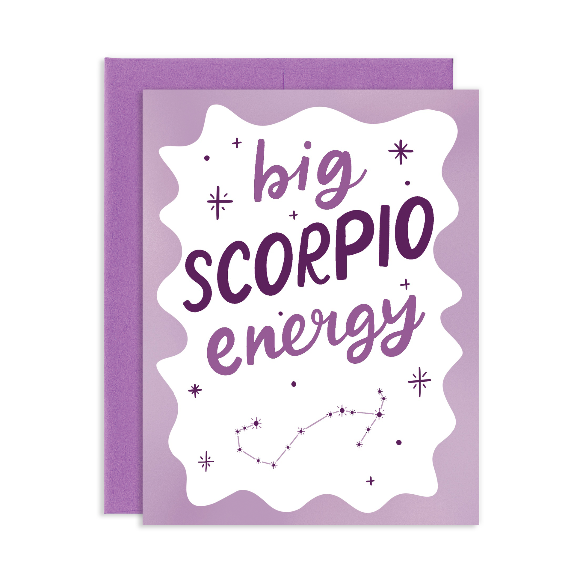 Celebrate the passionate and intense Scorpio in your life with our Big Scorpio Energy Birthday card. Featuring the scorpius constellation, this everyday card packs a punch with its cosmic design and good energy. Perfect for astrology loving scorpios.