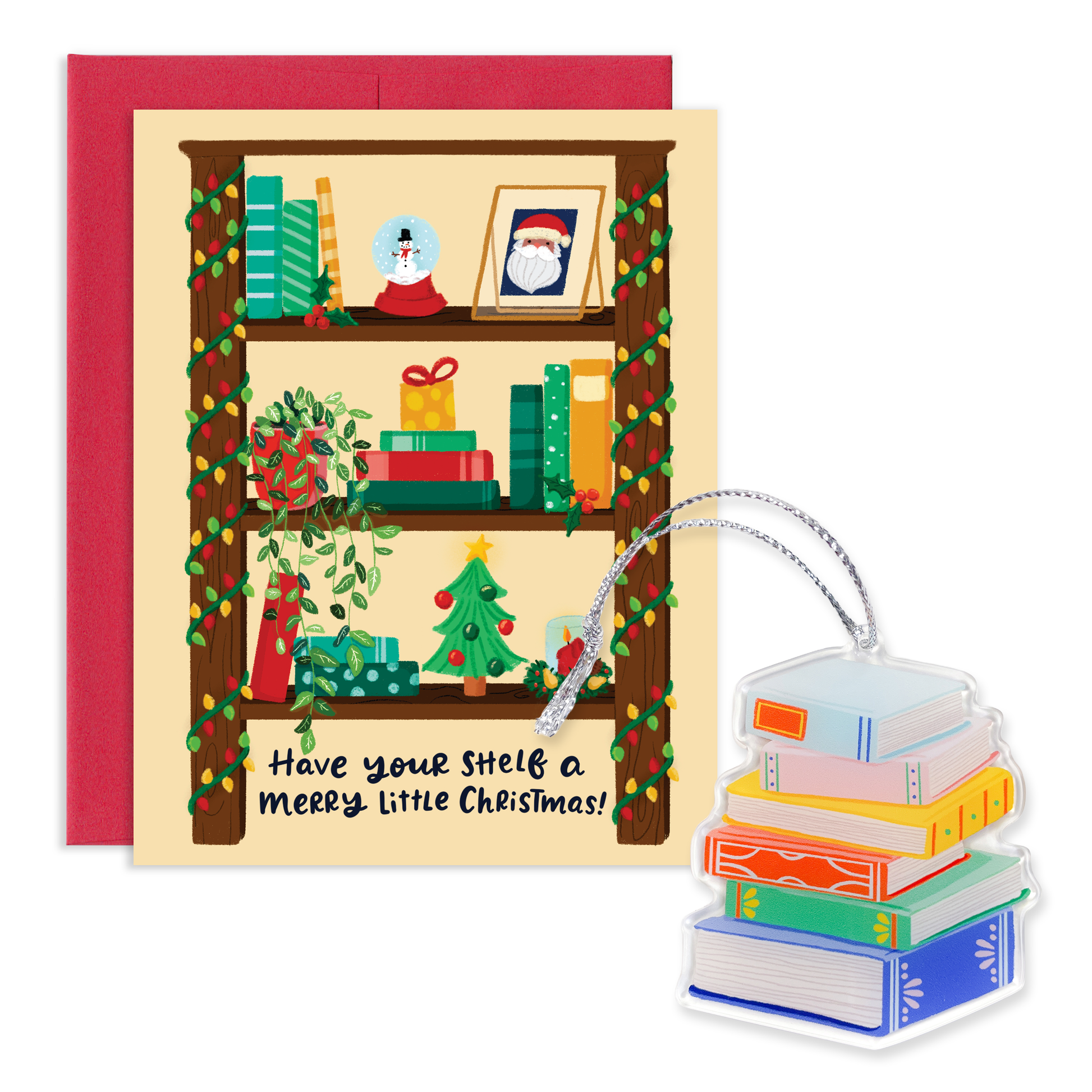 Make this holiday season extra bookish and share your love of literature with this unique Book Holiday Ornament Card set! Includes a bookshelf Christmas card and a book stack acrylic ornament - perfect for the bibliophile in your life! 📚😍