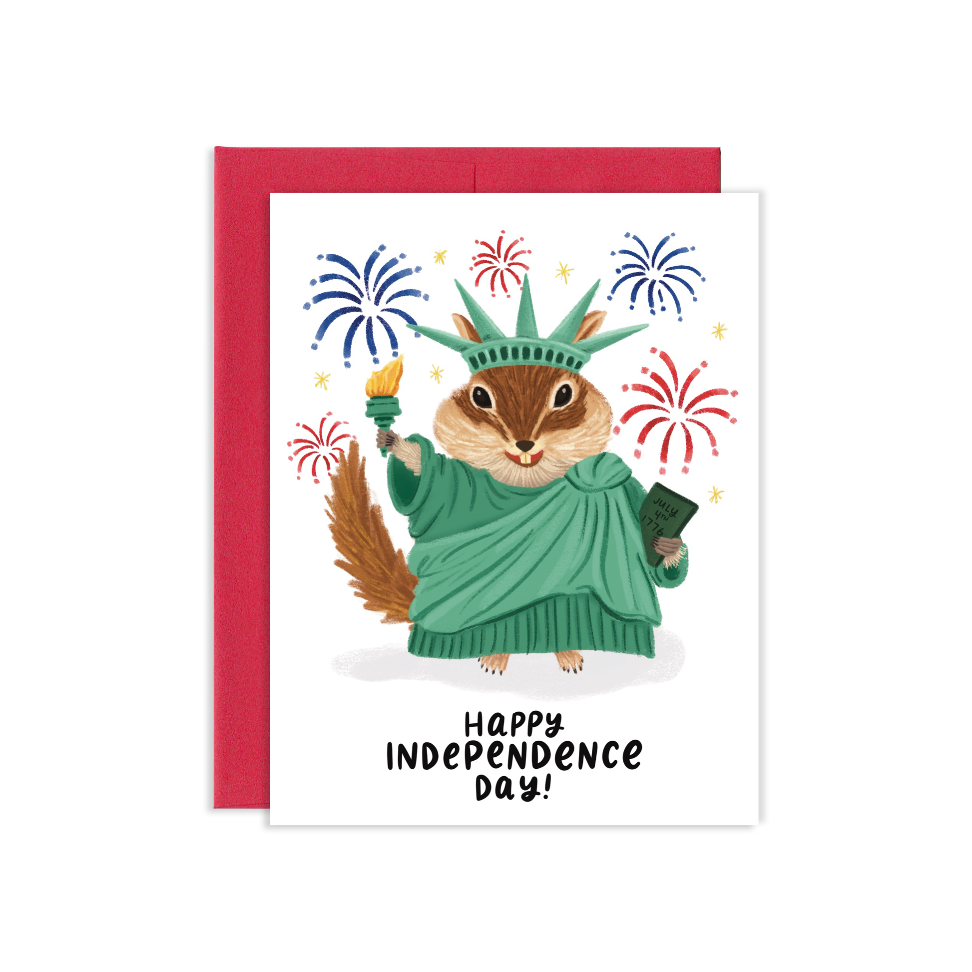 Celebrate America's independence with a festive Lady Liberty chipmunk 4th of July greeting card.