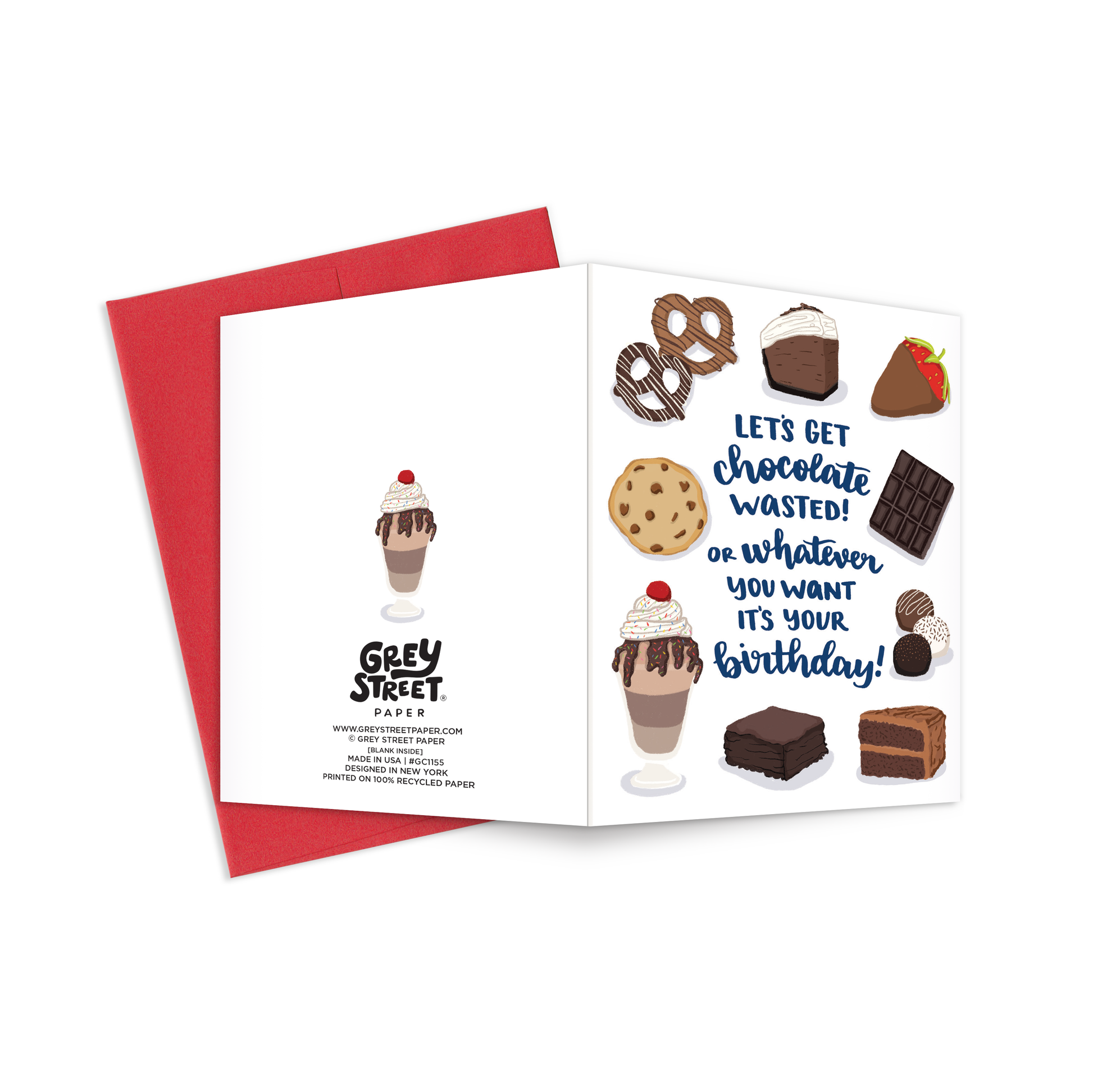 Say it with chocolate! Surprise your favorite birthday person with this hilarious card that celebrates not just their special day, but also their love of sweet treats. Chocolate covered pretzels, hot fudge sundaes, chocolate ganache truffles, chocolate covered strawberries, chocolate mousse pie, chocolate fudge brownies, chocolate cake, chocolate chip cookies, and dark chocolate! Make their birthday a sweet one!