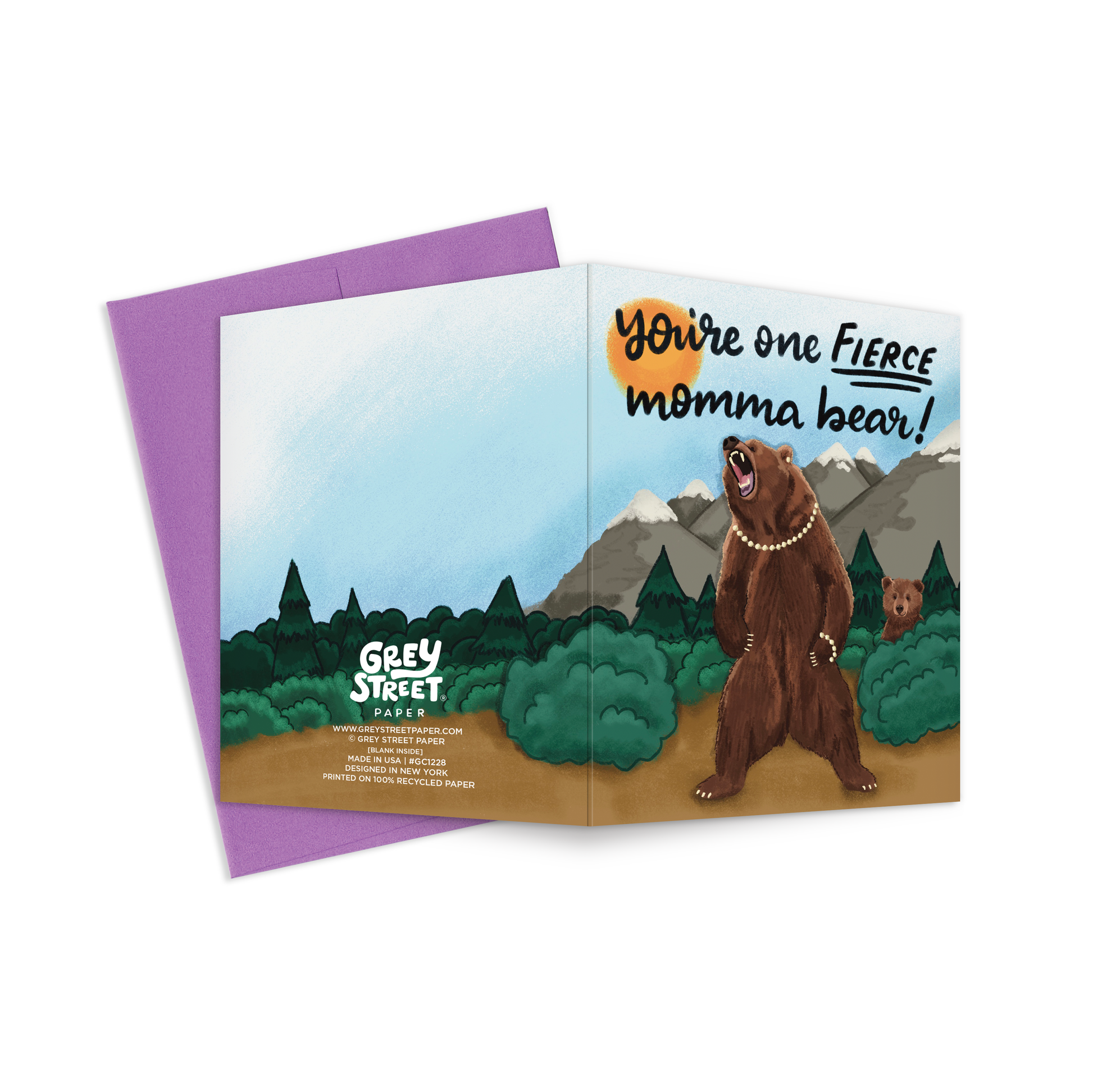 Looking for a Mother's Day card that captures the strength and ferocity of motherhood? Our "You're One Fierce Momma Bear" greeting card is the perfect way to let your mom know that you appreciate her unwavering protection and love. It's sure to bring a smile to her face and make her feel like the powerful mama bear she is. And with its fierce and playful tone, it's the perfect way to add some humor to your Mother's Day celebration. Let her know that you recognize her inner mama bear and watch her roar with delight!