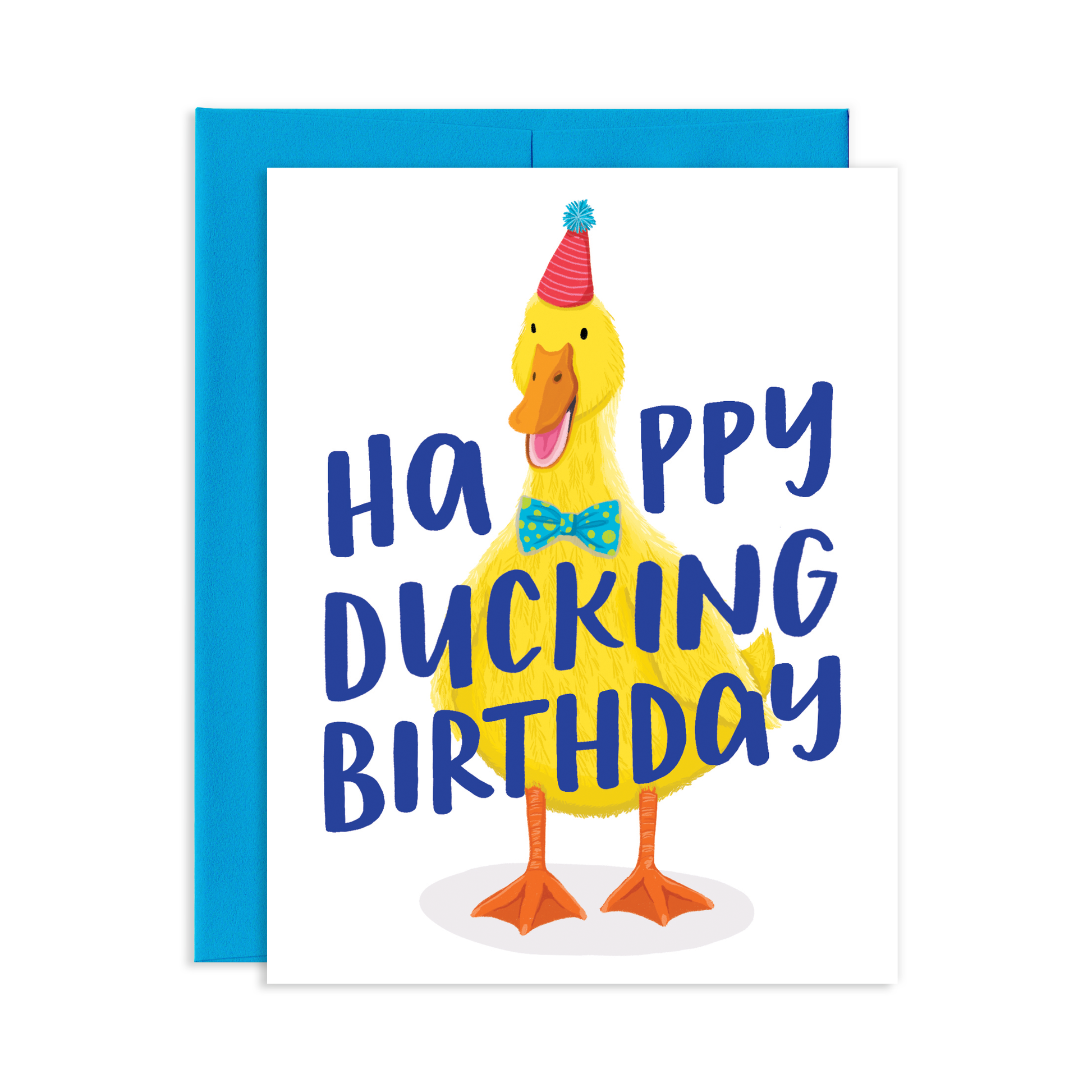 Don't get quacked up about finding the perfect b-day card - this 🦆 Happy Ducking Birthday Greeting Card🦆 is ducking hilarious! 🤣 Send your friends a card they'll never for-quack! 🤩