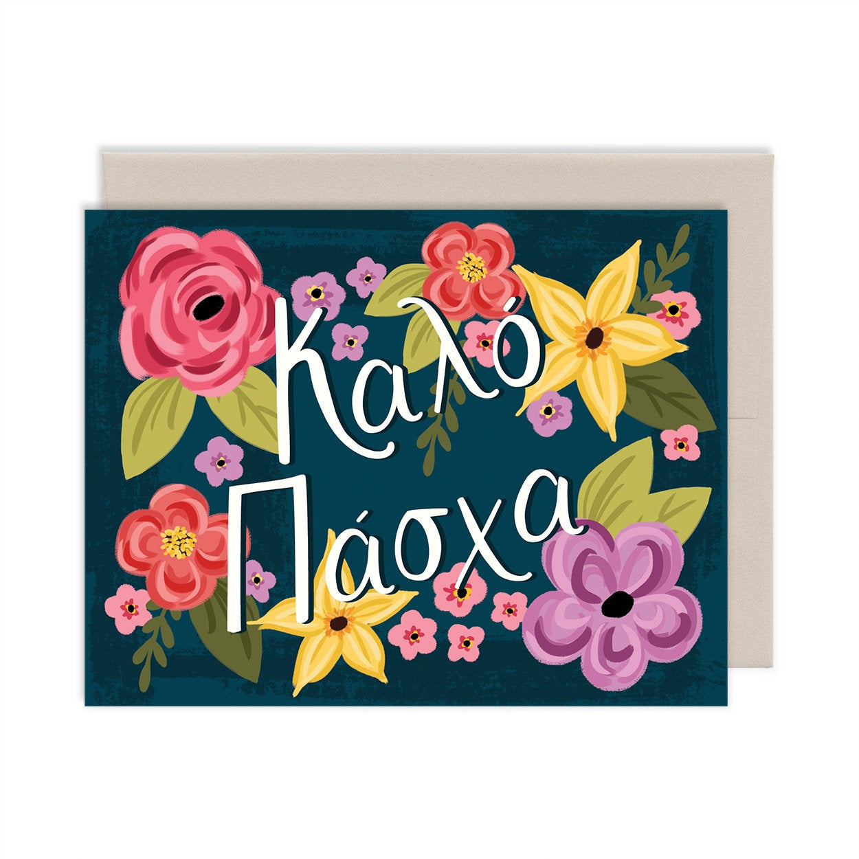 Celebrate Greek Easter with our Καλό Πάσχα Kalo Pascha greeting card! Featuring vibrant floral illustrations, this card is perfect for sending your well wishes to your family, friends, and loved ones. Opa!