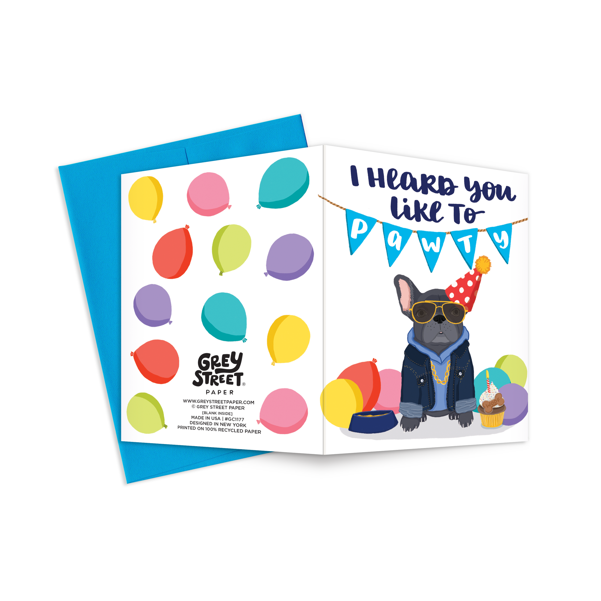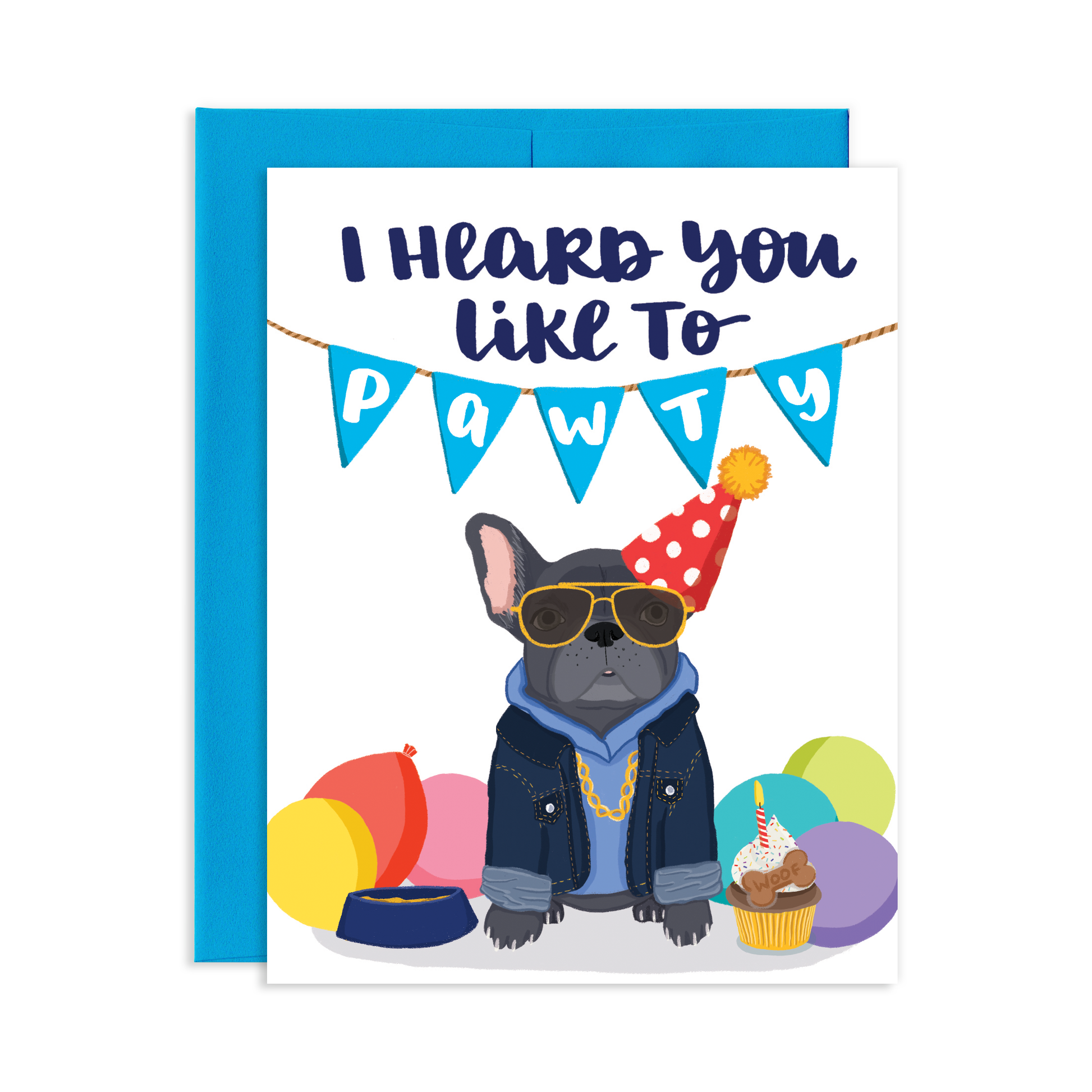 This Frenchie knows how to pawty! ! 🎂 Send your dog-loving pal this pawsitively perfect birthday greeting card. Featuring a french bull dog in party mode, it’s the perfect way to say “Let' get this party started!” 🎉.