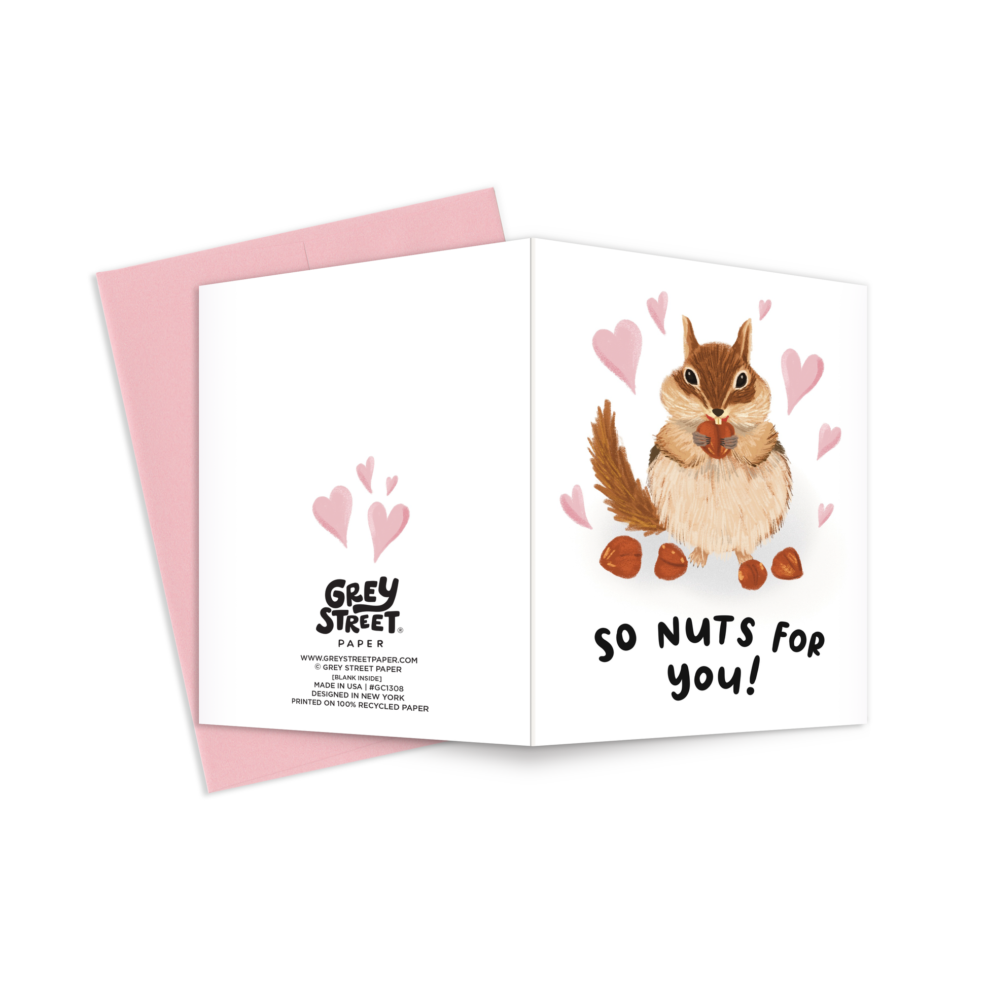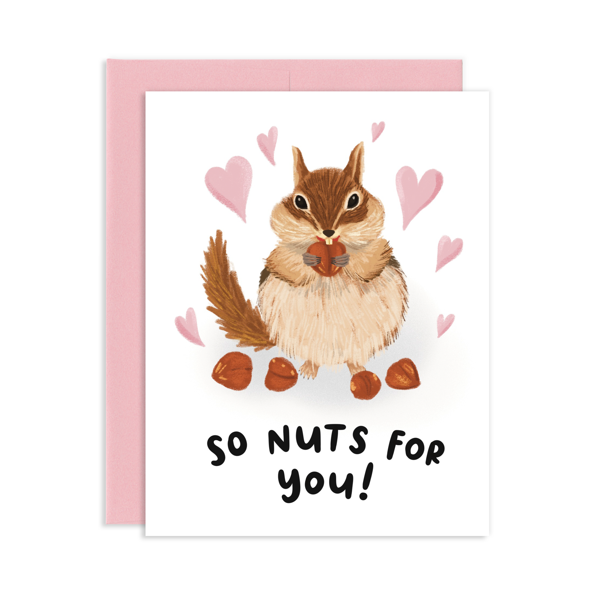 Express your love with this Nuts For You Chipmunk Greeting Card. Show your special someone how "nuts" you are about them with this adorable card. Perfect for any occasion to express your love in a fun and charming way. Featuring a cute chipmunk, this card will surely bring a smile to their face.