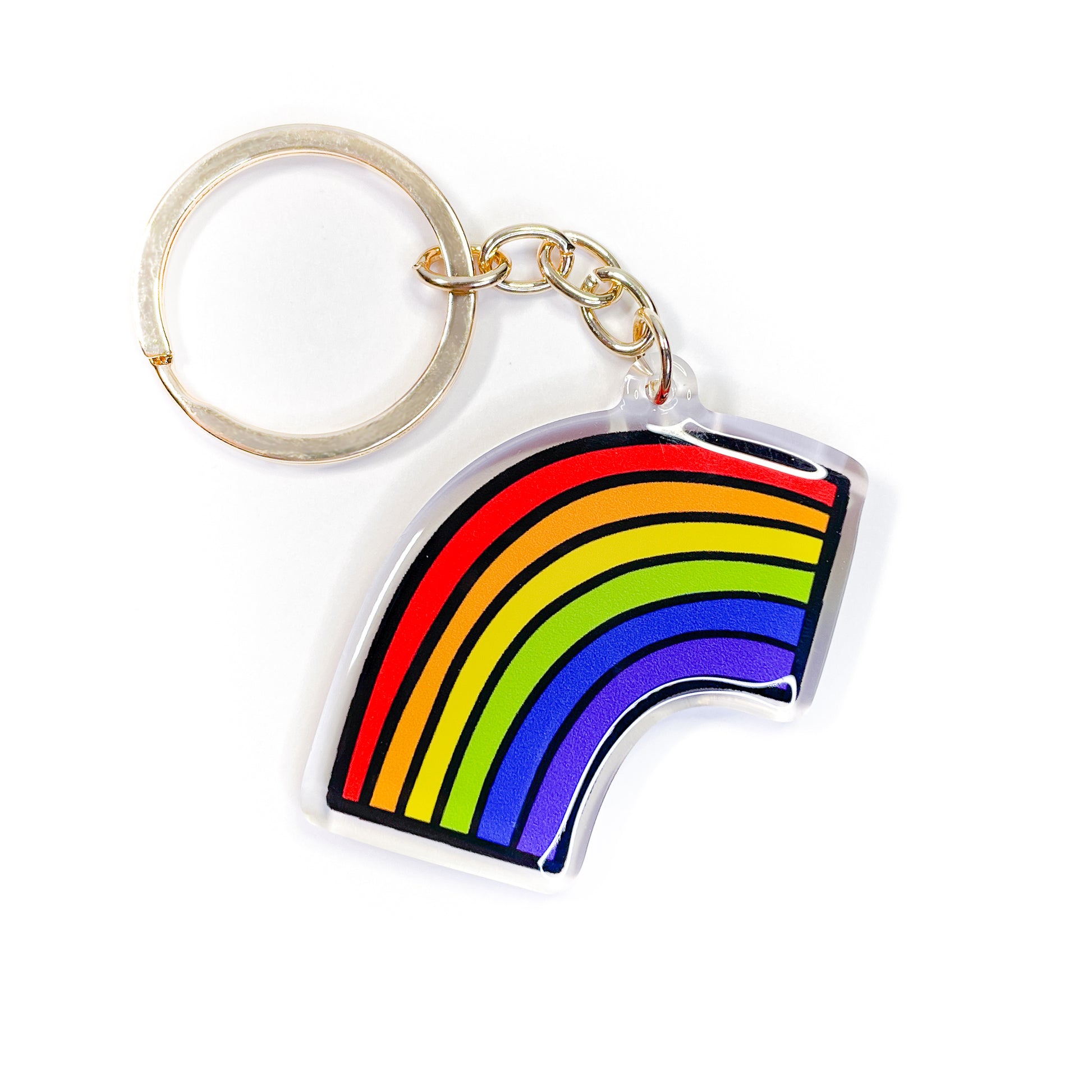 Brighten up your keys with this colorful rainbow keychain! Never lose your keys again (unless you're trying to) with this eye-catching accessory. Perfect for adding a playful touch to your everyday routine. Makes a great gift for anyone who loves a pop of color in their life.