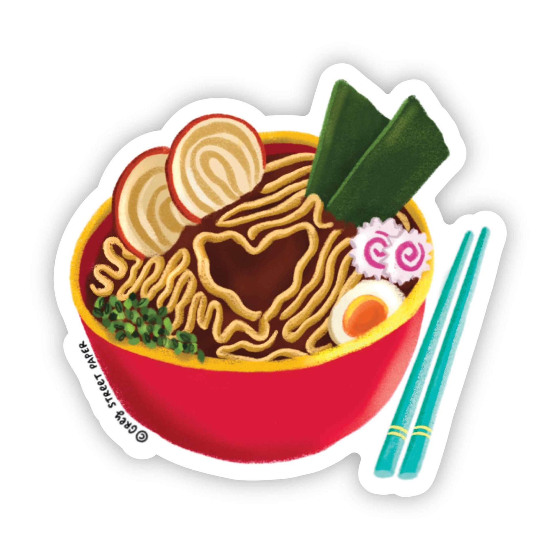 Slurp up some fun and spice up your life (and belongings) with this quirky Ramen Noodle Heart Sticker. From your water bottle to your laptop, show off your love for ramen with this fun sticker. The perfect addition to any ramen lover's collection!