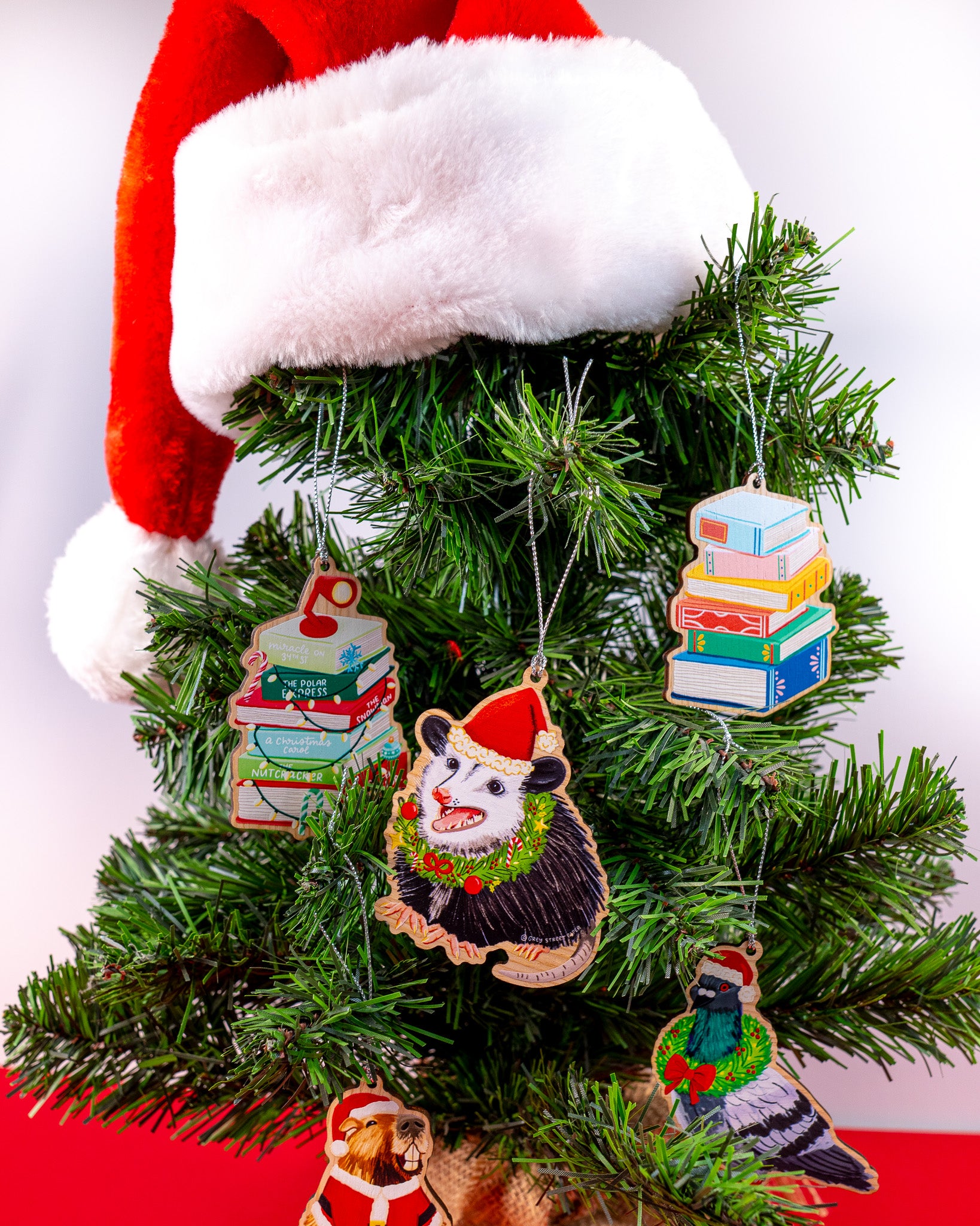 Santa Hat Opossum Festive Wreath Wood Christmas Ornament