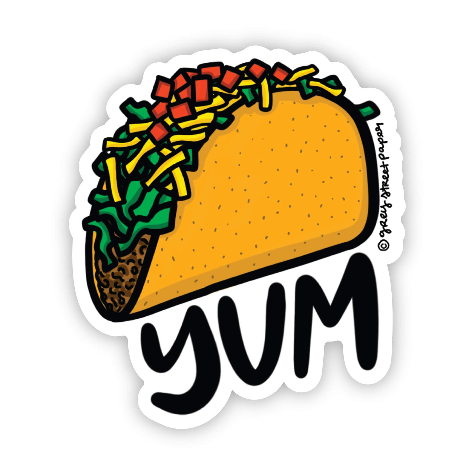 Get ready to add some flavor to your life with the Taco Yum Sticker! This quirky sticker features a mouth-watering taco, guaranteed to make you hungry (for more tacos). Stick it on your laptop or water bottle for a playful touch. Taco 'bout a fun addition to your sticker collection!