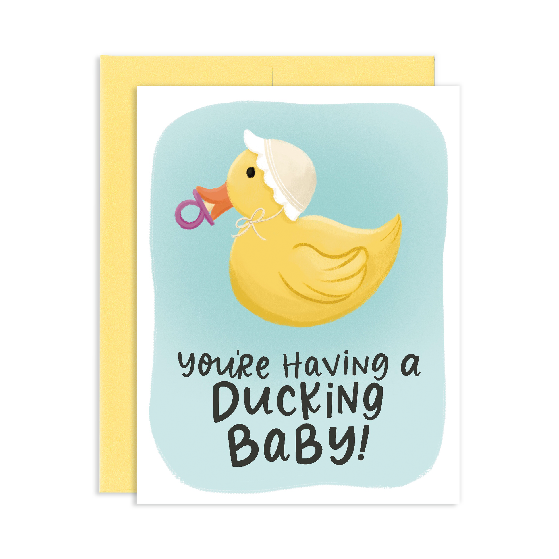 Quack up your loved ones with this hilarious and gender neutral baby shower greeting card! Featuring a cute rubber duck, it's the perfect way to congratulate someone on their "ducking" exciting news. Perfect for celebrating the arrival of a new addition to the family. Get ready to have a quacking good time!